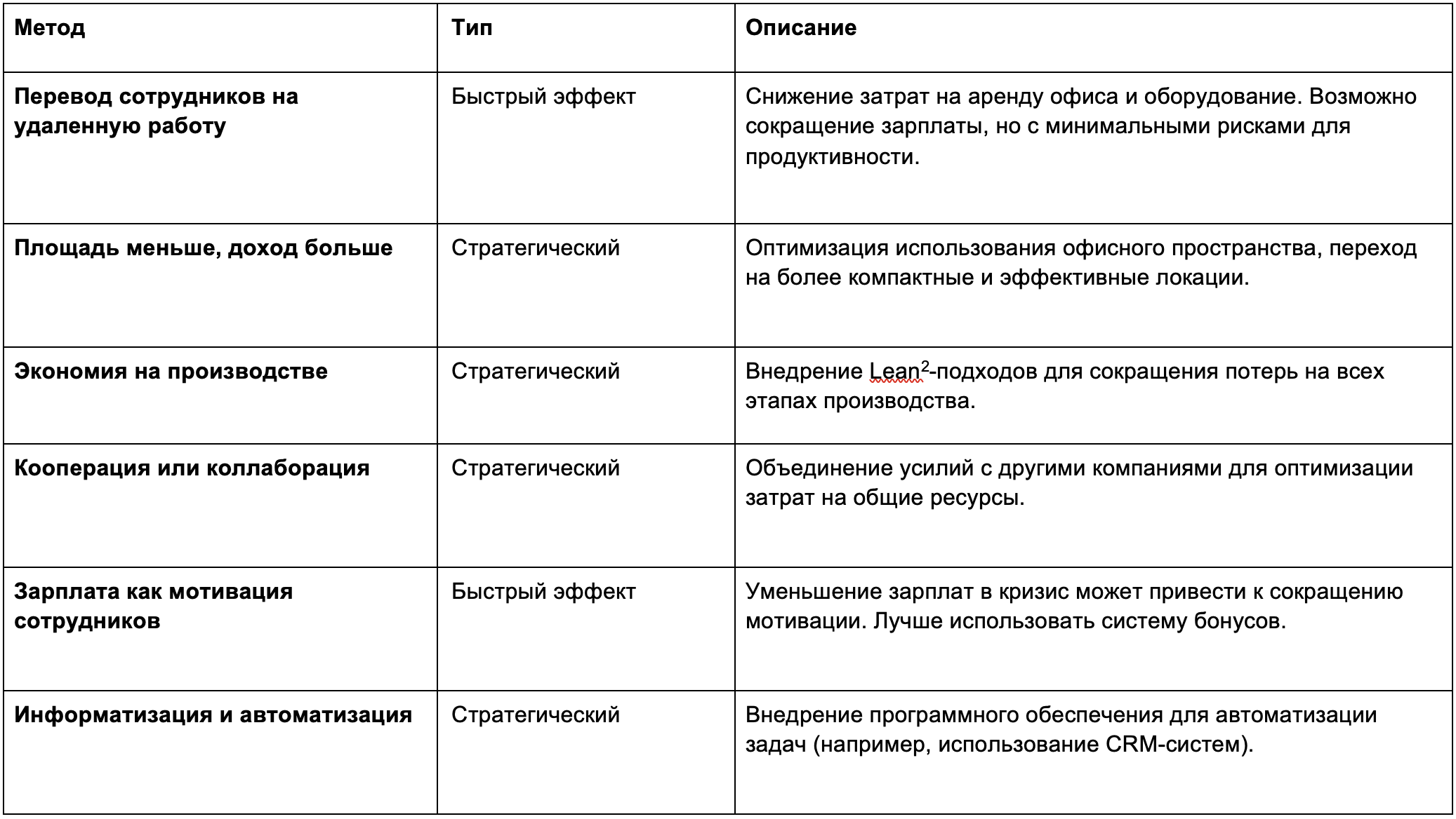 1. Сокращение штата. Экономия на персонале редко приносит ожидаемый результат. Оставшиеся сотрудники вынуждены выполнять тот же суммарный объем работ. Нагрузка на менеджеров увеличивается, а эффективность — падает.